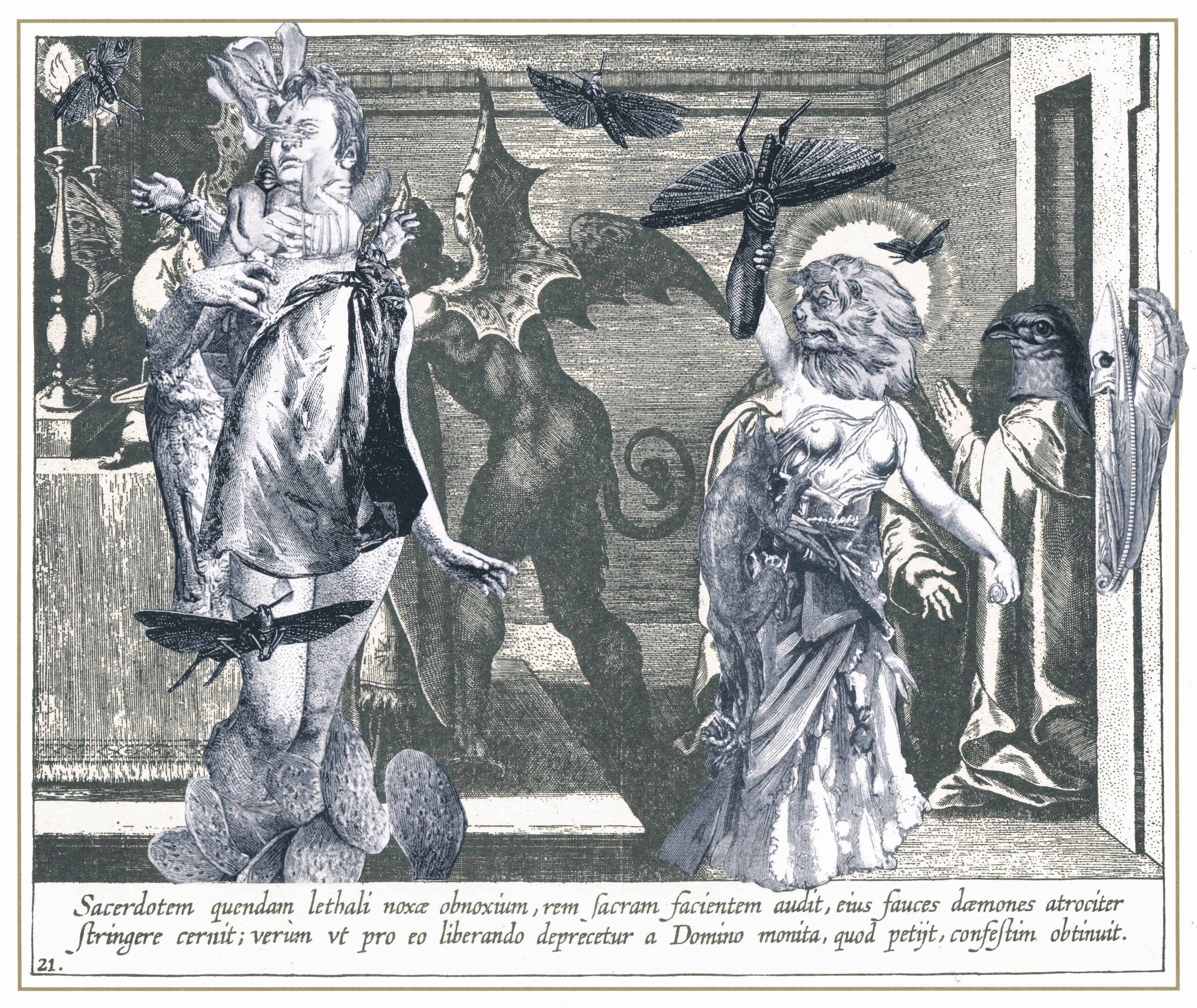 Visión de Santa Teresa en la cual ve a los demonios oprimiendo la garganta de un sacerdote, que celebraba misa en pecado mortal.
